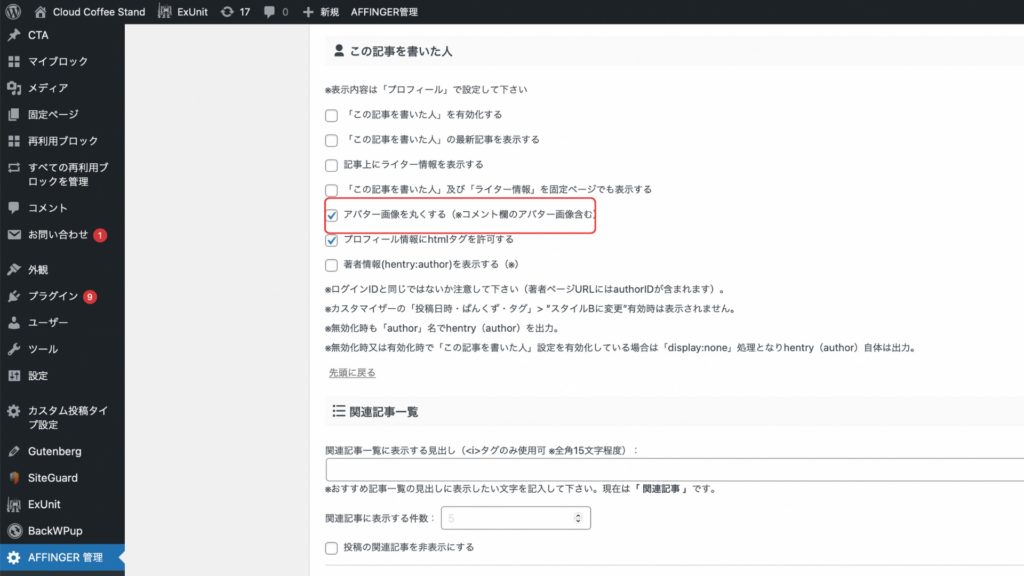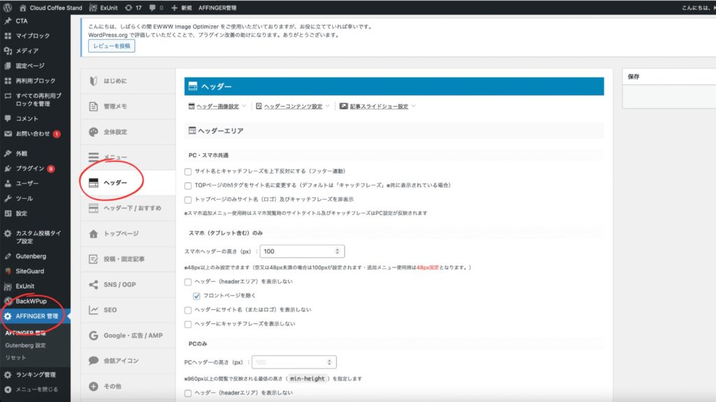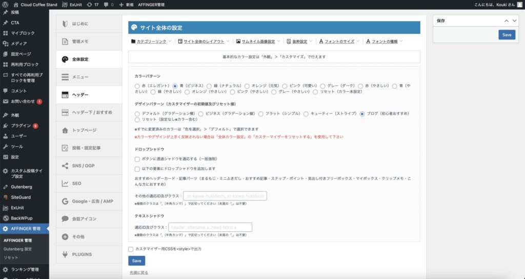 • AFFINGERの設定方法