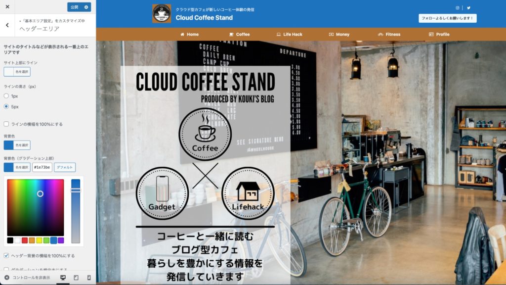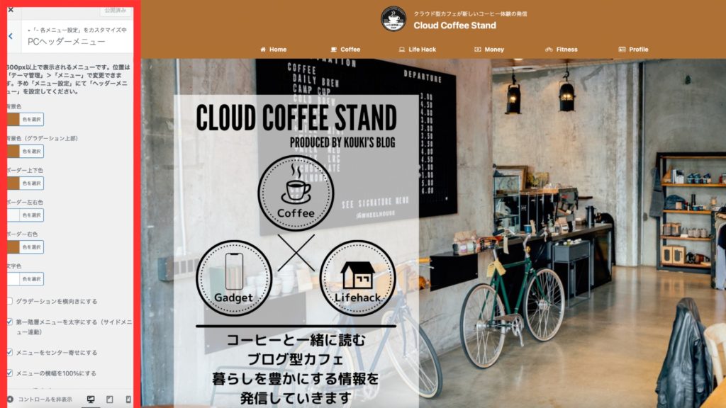 背景色背景画像を設定できます。設定はカスタマイズ画面で行います。