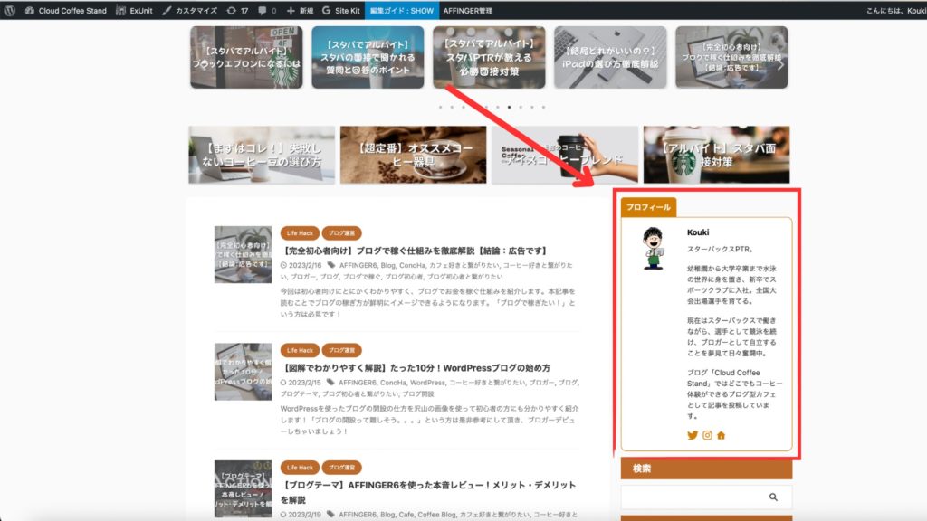 • 3.6 サイドバーにプロフィールを設定する方法