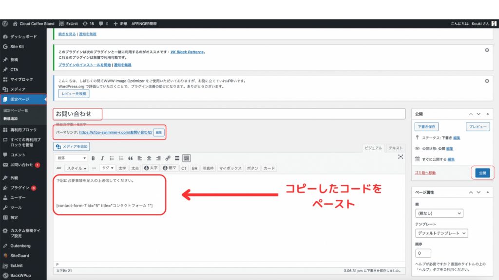 その③:ブログに有効化する