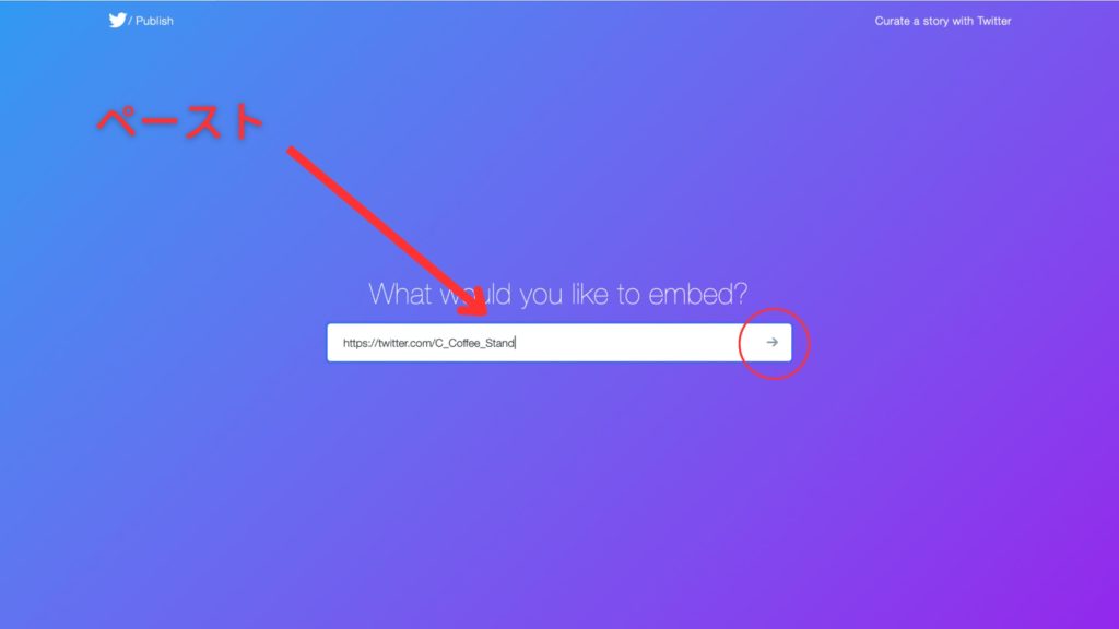 URLをコピーしたら「Twitter Publish」に戻り、検索窓にペーストしてエンターを押します。