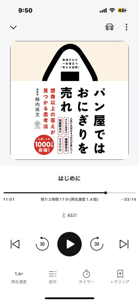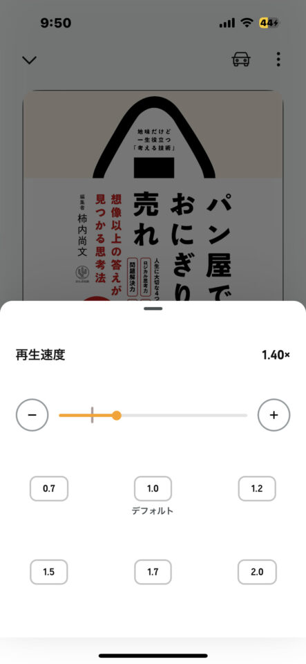 再生速度を細かく指定できるので、自分の聞きやすい速さで聞けるのが嬉しい!