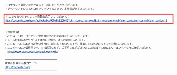 仮登録で入力したメールアドレスに、ココナラから案内通知が届きます。