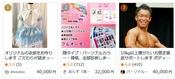悩み相談や、占い、ファッションの相談、っていうのもサービスとして出品されているからね。