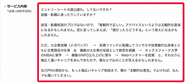 当然ですが、サービス内容は具体的かつ分かりやすい文章で書く必要があります。