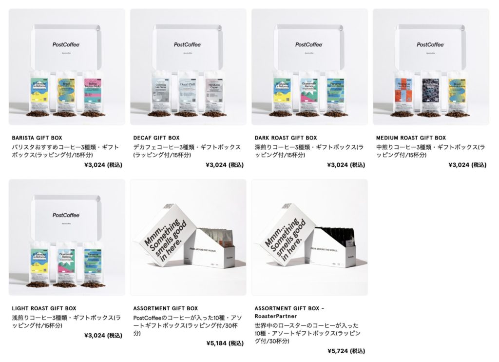 ポストコーヒーには、ご覧のとおりギフトもあります。